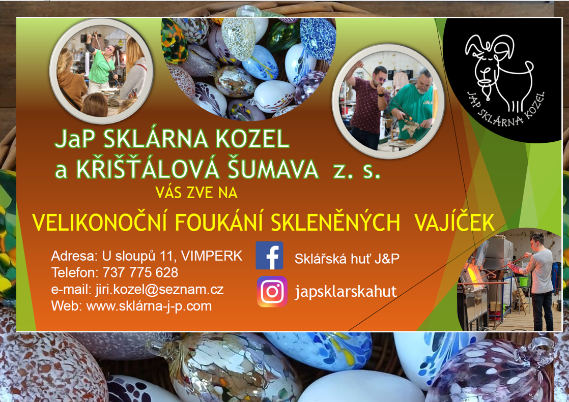 Zveme vás na unikátní workshop foukání skleněných vajíček. Přijďte si vytvořit originální kousek z českého křišťálu a zažijte magii horkého skla na vlastní kůži.Začínáme již dnes a pokračujeme až do velikonoc.